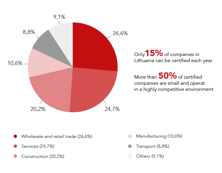 • Only 15% of companies operating in Lithuania meet the requirements of the “Strongest in Lithuania” certification;