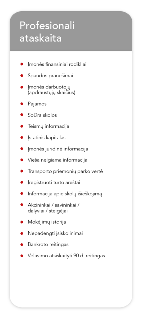Padeda nustatyti daugiau nei 200 šalių įmonių kreditingumą, verslo sąsajas ir patikimumą